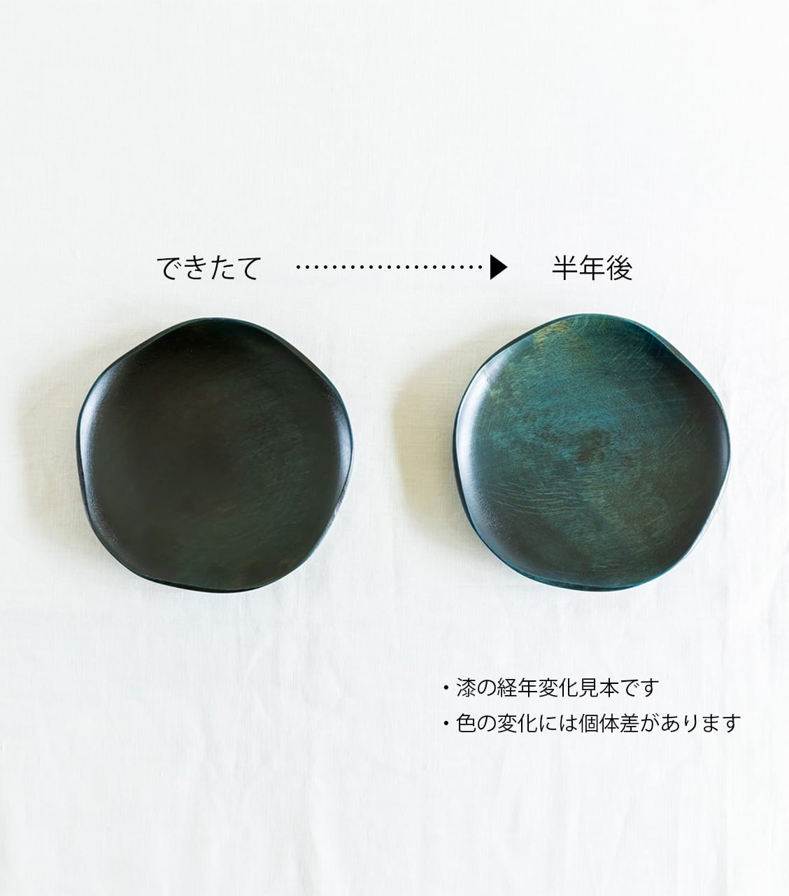 ・天然木を素地にしているため、木の状態により木目に違いが生じます。