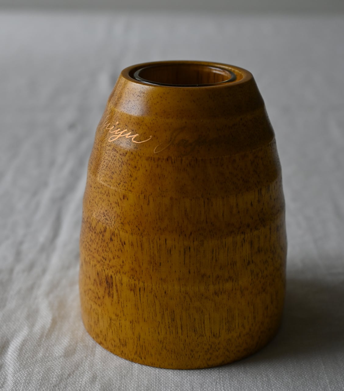 いちばんは、長い時間お水を入れておけること木製漆器本体の長時間の水の浸け置きはオススメしていませんが内側にガラス容器を差し込んでいただくことで一輪挿しにも使えるようになりました